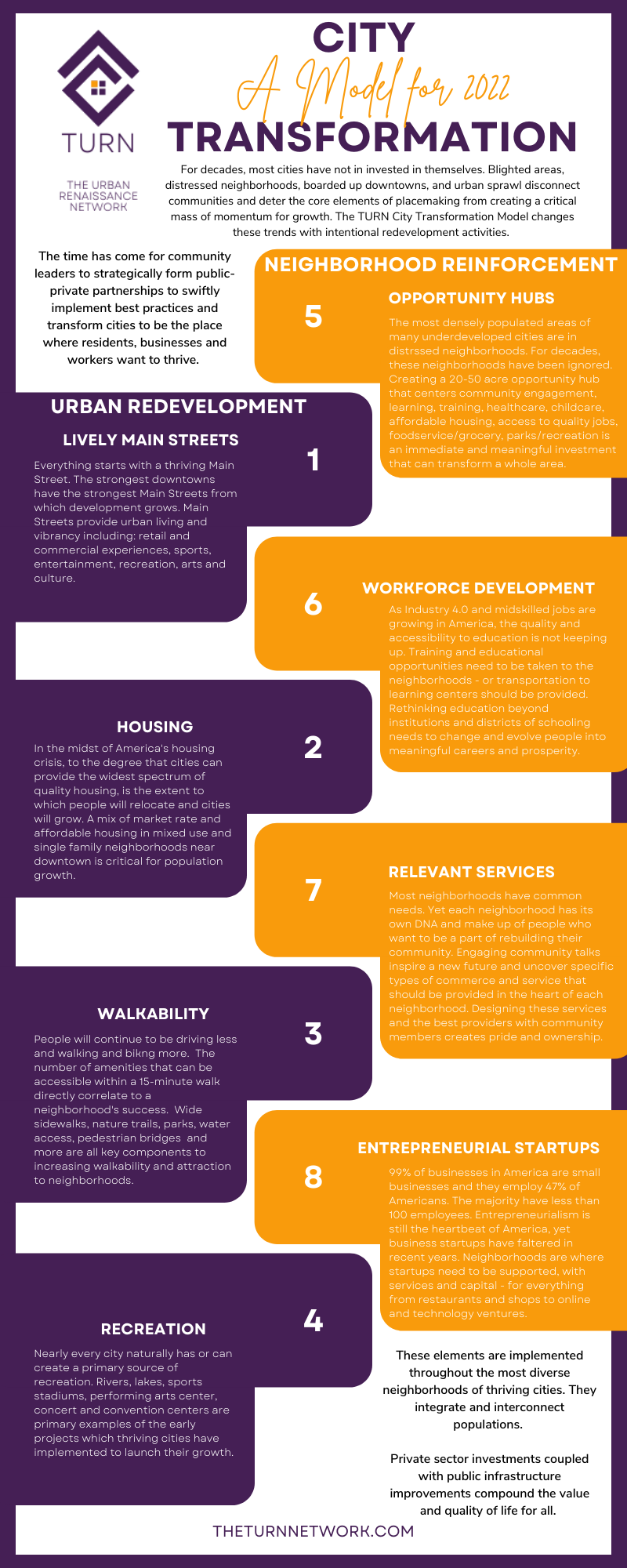 The Urban Renaissance Network (TURN) principals have specialized in the development and implementation of growth projects with progressive community leaders. We have collectively planned and implemented community development projects with a broad range of private and public leaders from most business and government sectors. We identify and integrate the vision, collaboration, work planning, and funding required to see projects through to execution.
